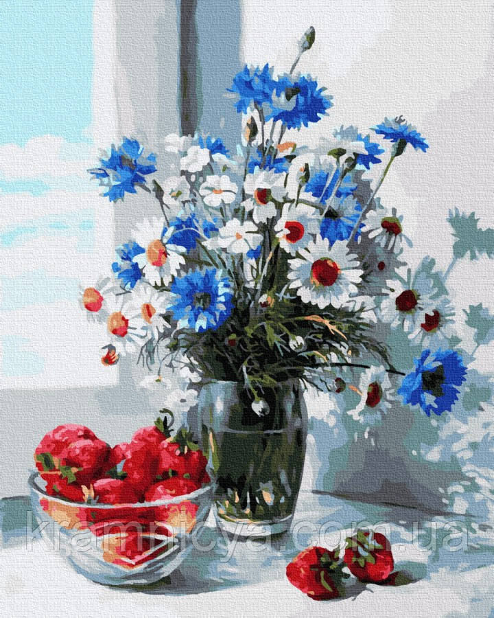 Картина за номерами Полуниця і польовий букет, 40х50 Rainbow Art (GX30291)